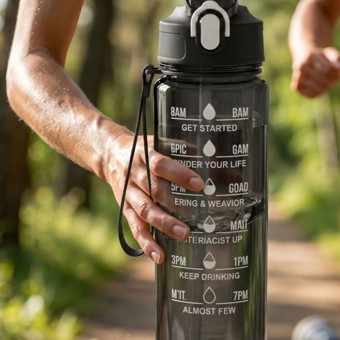 Squeeze Esportiva 700ml Com Marcador de Horário e Canudo Silicone – Garrafa Transparente Leve com Alça