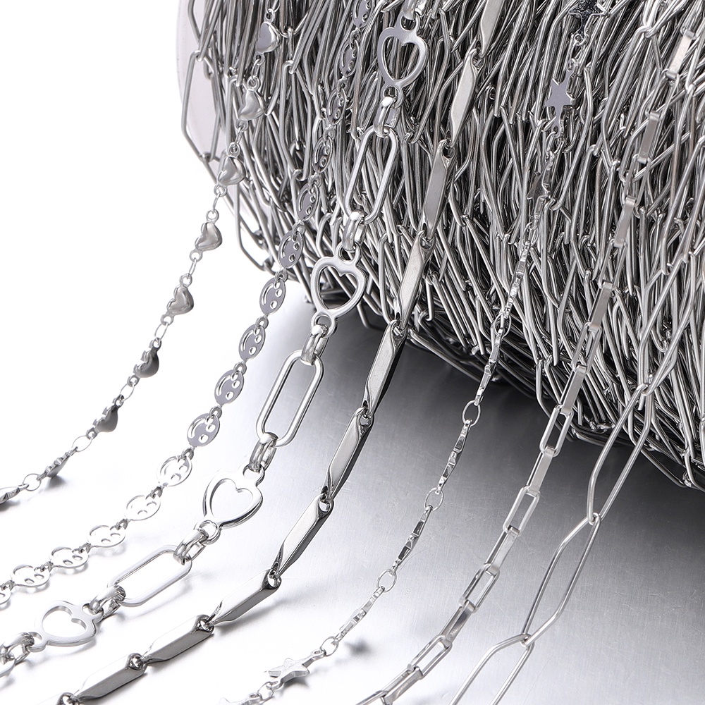 St. kunkka 1m 304 Corrente de Aço Inoxidável Colar de Aço Inoxidável Colar de Aço Inoxidável em Forma de Coração Cauda de Peixe Cinco Pontas Estrela Sorridente Face de Aço Inoxidável Não Desbotada Pode ser Usado para Jóias de Bricolage Colar de Corrente d