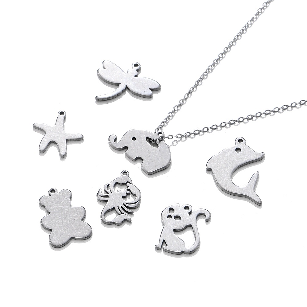 St.kunkka 5pcs 316 Pingente de corte em aço inoxidável Pingente de superfície lisa Libélula Borboleta Vaca Gatinho Elefante Pingente para Jóias de Bricolage Colar Pulseira
