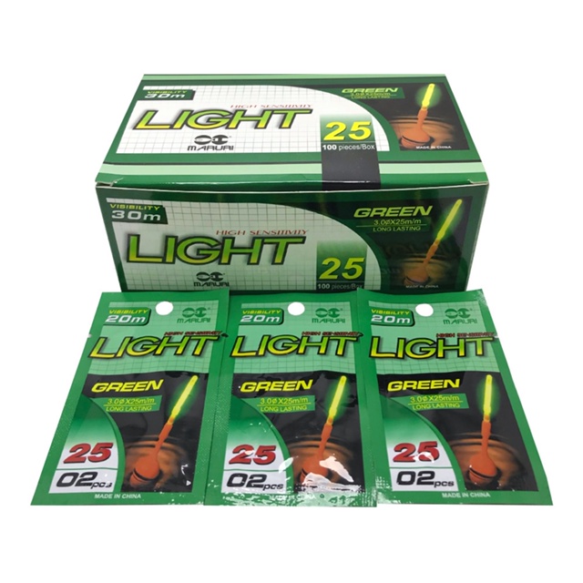 Luz Qumica Star Light 3.0 - 25mm Caixa 50 Cartelas Maruri Green Light Maruri, foi feito para voc que gosta de pescar em perodos nortuno peixes como Espada, Tilapia, Corvina, entre outros. O Green Light basicamente um basto luminoso que se encaixa na bia para que voc consiga enxergar de longe a sua bia no escuro. Feito com Plstico ABS, Perxido de Hidrognio, Oxalato e Corante. COMO USAR: Curve o basto suavemente at ouvir o som. Agitar bem para misturar os produtos qumicos. ESPECIFICAES: Marca: Maruri Modelo: Green Light Visibilidade: 20m Tamanho: 2,5cm Quantidade: 1 Caixa com 50 Cartelas (Cada cartela contm 2 peas de Star Light) Imagens Ilustrativas ======================================================================= Nossa empresa atua exclusivamente no comrcio de PESCA, CAMPING e LAZER. Trabalhamos com as melhores e mais renomadas marcas do mercado. Confira algumas vantagens de comprar conosco: - Temos CNPJ, somos uma empresa consolidada - Emitimos Nota Fiscal eletrnica - Postamos sua encomenda no mesmo dia ou NO MXIMO no prximo dia til - GARANTIA dos produtos vendidos - Todos os produtos so TESTADOS antes do envio - Produtos a pronta entrega - Atendimento personalizado - Produtos ORIGINIAIS de alta qualidade Nossos horrios de atendimento: - SEG A SEX das 9h00 s 18:30hs