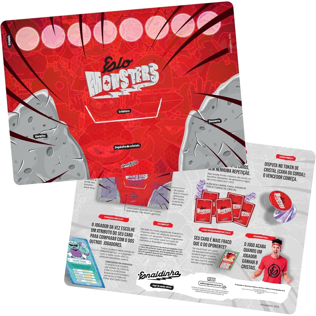 Starter Pack Elo Monsters EnaldinhoNo pacote você encontrará:* 01 tabuleiro* 01 Guia de regras* 01 Porta cards* 20 cards (04 envelopes )* 08 tokens de cristalNovoLacrado