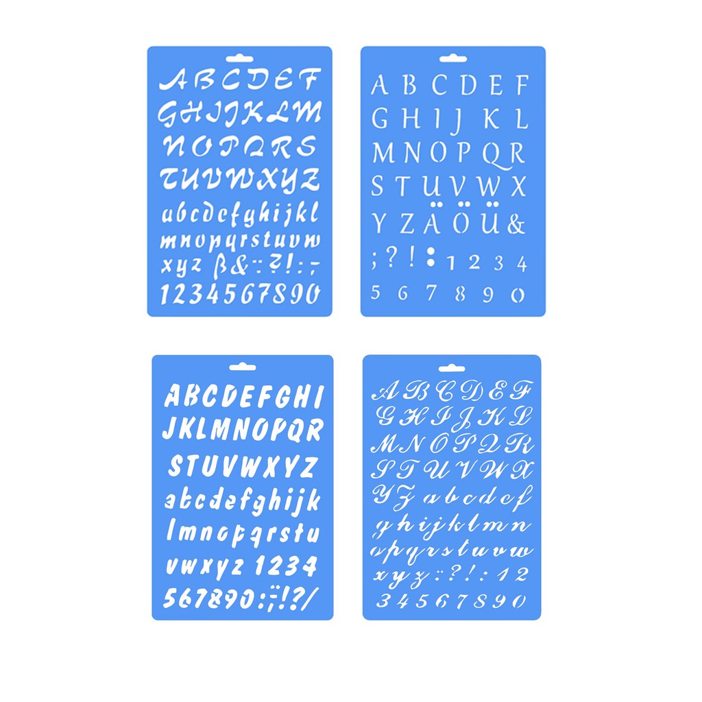 Stencil Alfabetos Kit 4 Moldes Vazados de Letras Números Sinais de Pontuação Símbolos