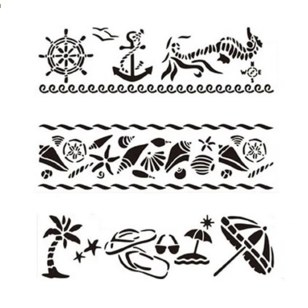 Stencil Barras Praia Mar 3 moldes vazados