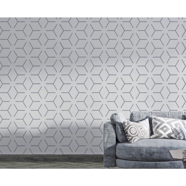 Stencil Cubo Geométrico Estêncil Pintura Parede 60x55cm
