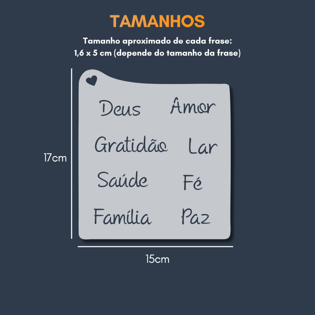 Stencil Molde Palavras para Pintura, Tecido, Artesanato, Mdf, Deus, Gratidão, Fé, Família, Paz