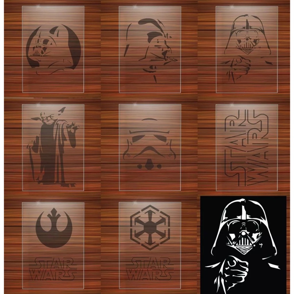 Catalogado na subcategoria Réguas, Transferidores e Estênceis (de Papelaria), Stencil Star Wars Kit 8 moldes vazados A4 está à venda na Shopee Brasil por R$ 79,90.
