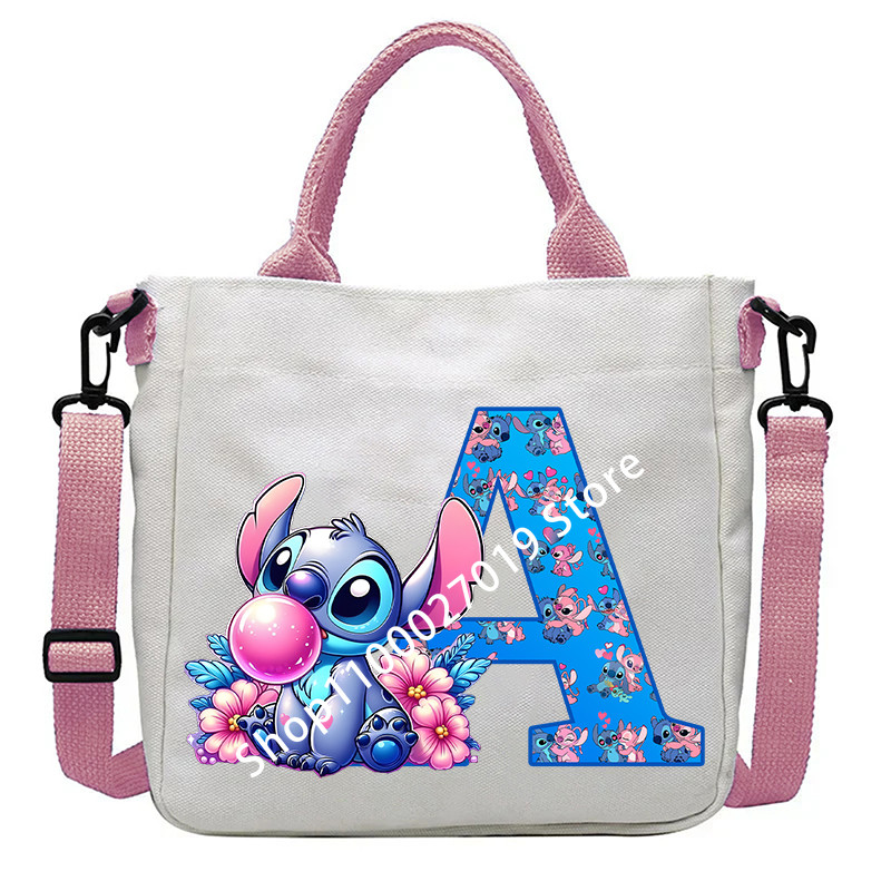 Stitch Bolsa De Lona Letra A ~ Z Moda Sacola Fofa Impressa crossbody Ombro Presente De Aniversário