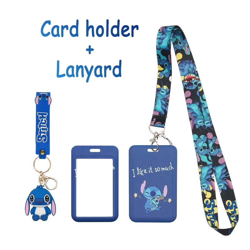 Stitch cordão porta-cartões de identificação chaveiro desenho animado cordão de pescoço com porta-identificação para