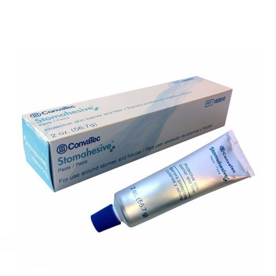 A pasta Stomahesive® Protetora de Pele é uma pasta de preenchimento, altamente eficaz como barreira protetora e selante da pele reduzindo o risco de irritação da pele causada pelos efluentes, utilizado com dispositivos para cuidados de estomas como bases e bolsas de colostomia. A pasta Stomahesive também é utilizada para proteger a pele exposta ao redor de locais de fístulas, entre a base do estoma e a área de recorte da base protetora, como material de enchimento para dobras da pele e superfícies cutâneas irregulares. É aplicada ao redor de colostomias, ileostomias ou urostomias. Modo de usar: Com as pontas dos dedos umedecidos para moldar a pasta Stomahesive®, aplicar em volta de colostomias, ilestomias, urostomias, borda da fístula, ou em qualquer dobra ou superfície irregular da pele até alcançar uma camada uniforme. Para a pasta secar completamente, esperar certa de um minuto. Feche firmemente a tampa após o uso, e guarde o frasco em local fresco e seco. *Stomahesive® Pasta Protetora de Pele é indicada somente para uso externo. Não aplicar diretamente sobre feridas abertas ou úlceras cutâneas.