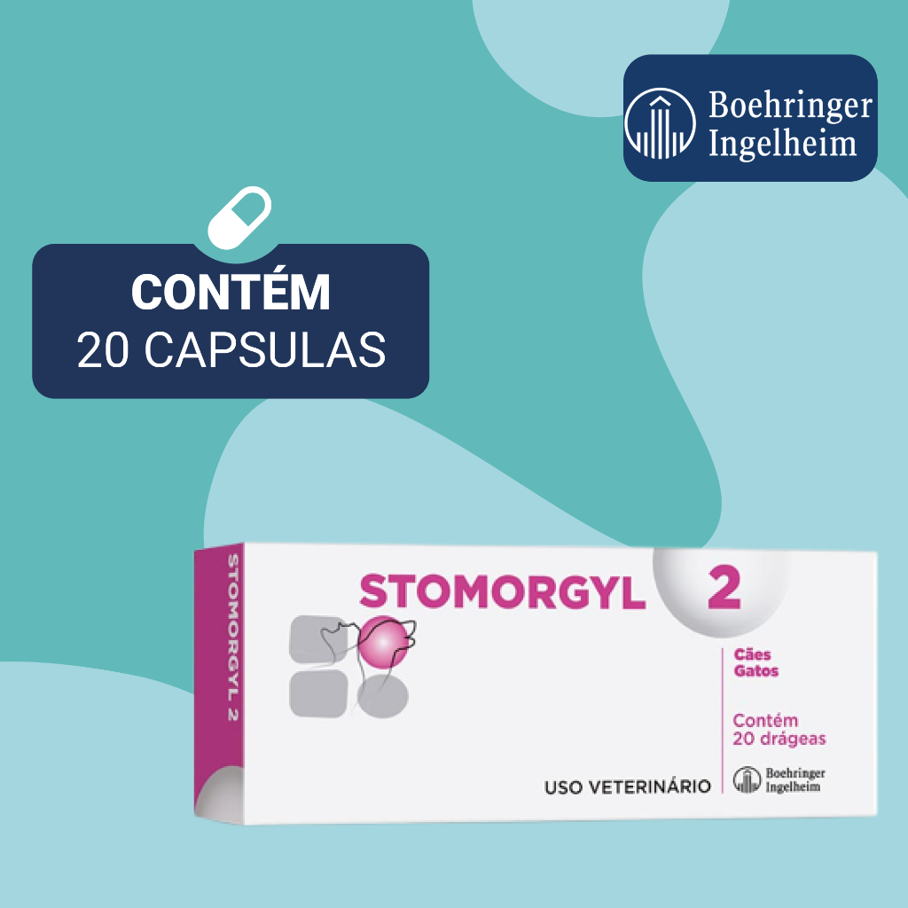O Stomorgyl 2 é um produto de uso veterinário indicado para cães e gatos, formulado para auxiliar em casos de afecções orais como estomatites, gengivites e periodontites. Sua combinação de componentes ativos oferece suporte à saúde bucal e contribui para o bem-estar do animal. Com comprimidos orais de fácil administração, permite ajuste de dose de acordo com o peso do pet, oferecendo praticidade ao tutor e eficácia no manejo clínico. FICHA TÉCNICA Marca: Merial (Boehringer Ingelheim) Produto: Stomorgyl 2 Indicação: Cães e gatos com necessidade de suporte oral Apresentação: Caixa com 20 comprimidos Composição: Espiramicina e Metronidazol Posologia: 1 drágea a cada 2 kg de peso corporal por 5 a 10 dias Administração: Uso oral conforme orientação veterinária CUIDADOS COM O PRODUTO Utilize apenas sob recomendação de médico-veterinário Não fracionar comprimidos sem orientação profissional Armazene em local fresco, seco e protegido da luz solar Mantenha fora do alcance de crianças e animais não indicados Suspenda o uso e consulte o veterinário em caso de sinais adversos