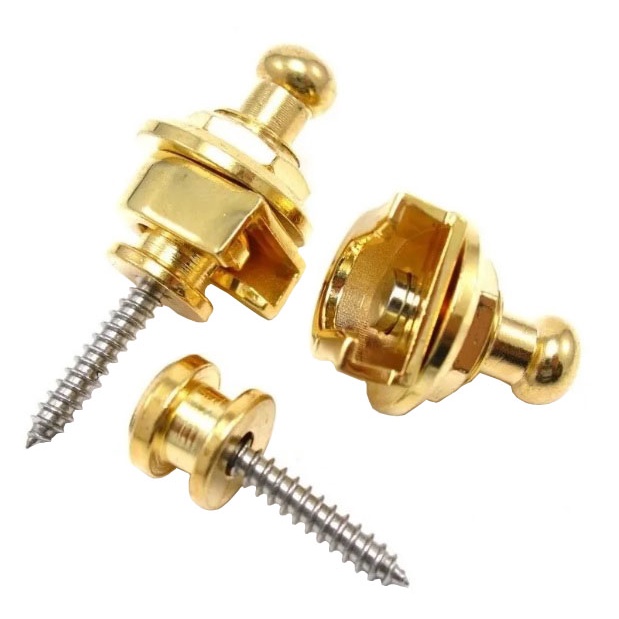 Strap Lock Trava Correia Talabarte Par 2 Peças Guitarra Violão Contra Baixo Dourado + Palhetas