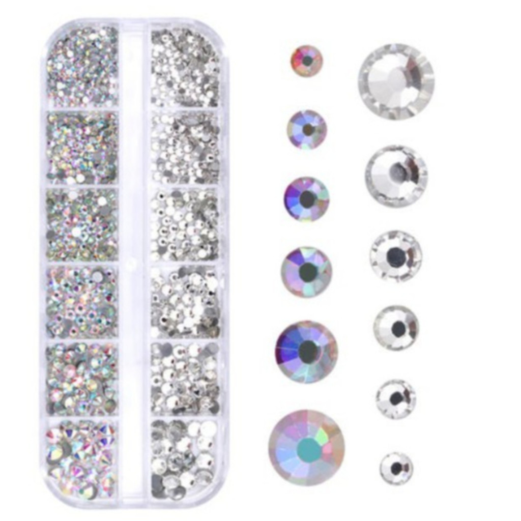 Kit Com 12 Strass Pedrinhas Brilhantes de Múltiplos Tamanhos Prata Para Decoração De Unhas Arts, Poder Seu Colada No Rosto, Corpo, Roupas, Acessórios e Muito Mais