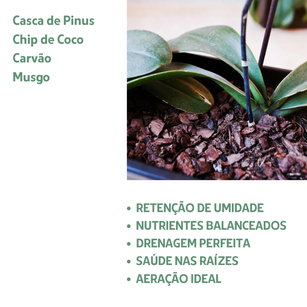 Substrato Completo para Orquídeas 3L/6L/9 Litros Com Casca de Pinus Chip de Coco Carvão e Musgo