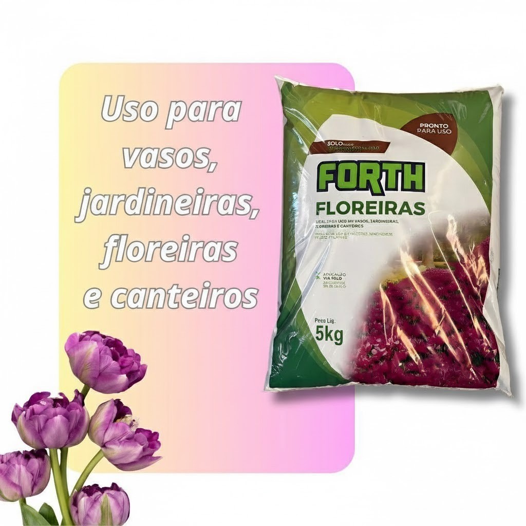 Agradecemos a compreensão!! Transforme seus vasos e jardineiras com o FORTH Floreiras 5kg, um condicionador de solo pronto para uso que garante plantas mais saudáveis, com floração intensa e desenvolvimento vigoroso. Ideal para o cultivo de flores ornamentais em vasos, floreiras, jardineiras e canteiros. 🌿 Benefícios: • Solo leve, fértil e equilibrado • Facilita o enraizamento e melhora o crescimento • Rico em matéria vegetal e nutrientes • Aplicação prática diretamente no solo • Pode ser usado puro ou misturado à terra 💧 Modo de usar: Misture com a terra do local ou utilize puro, conforme necessidade. Após o plantio, regue bem. Garanta já um jardim mais florido e saudável com FORTH Floreiras!