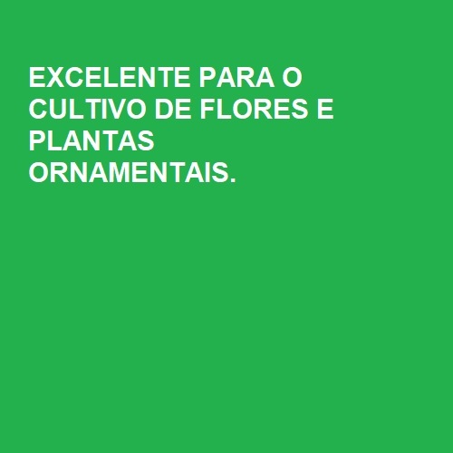 Substrato Plantio Vasos, Mudas E Floreira Premiuml Substrato Vasos e Floreiras é excelente para o cultivo de flores e plantas ornamental ideal para preencher o recipiente como, jardineiras, vasos, etc.. podendo usar em jardins como horta, pomares, sementeiras e outros. Produto aerado de simples aplicação, não tem cheiro ou contra indicação É um substrato orgânico preparado a base de matérias primas enriquecido com microrganismos benéficos ao solo. Principais vantagens do produto: Produto pronto para uso e sem cheiro Produto com alto teor de material humificado Promove uma boa estrutura do solo melhorando drenagem e aeração Proporciona condições ideais para organismos benéficos ao solo e às plantas Isento de ervas daninhas e microrganismos patogênicos Proporciona melhor qualidade de produção Os produtos não possuem nenhum tipo de aditivo ou processo químico, são totalmente orgânicos, valorizando a natureza e priorizando a eficiência e produtividade Composição Vasos e Floreiras: A base de Macro e Micro Nutrientes.