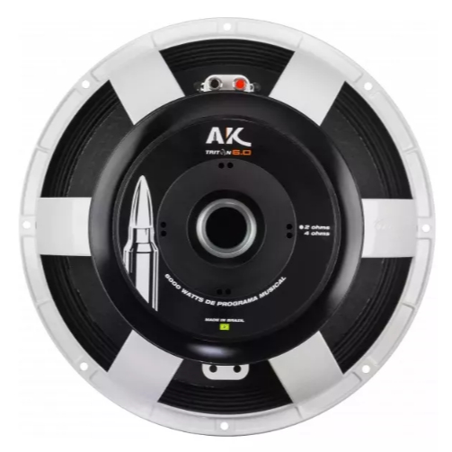 A Triton alto-falantes traz inovações tecnológicas e tendências musicais com o AK 6.0 de 15 polegadas. O AK 6.0 15" oferece 6000W de programa musical na versão de 4 Ohms. A qualidade sonora é o grande destaque, realçando as frequências baixas sem perder o ataque. Possui um fluxo magnético potente e controlado. O sistema de refrigeração direciona o fluxo de ar, priorizando a dissipação do calor produzido na bobina. Informações Técnicas • Potência Máxima Contínua: 3000W RMS • Impedância Nominal: 4 Ohms • Material da Bobina Móvel: Cobre • Diâmetro de Corte do Baffle: 360 mm • Diâmetro Nominal: 15” • Ressonância Nominal: 49,01 Hz • Sensibilidade: 96,04 dB SPL (1W@1m) • Diâmetro da Bobina Móvel: 4” • Xmax: 11,7 mm • Fs: 49,01 Hz • Re: 3,0 O • Qms: 12,12 • Qes: 0,31 • Qts: 0,30 • Vas: 67,21 • Sd: 9.08E-02 • Bl: 23,06 T/m • Peso Líquido: 22,50 kg • Peso com Embalagem: 23,70 kg • Dimensões da Embalagem (LxAxP): 43 x 23 x 43 cm • Volume Ocupado Pela Embalagem: 42,5 L Antes de adquirir o produto, verifique a compatibilidade com seus equipamentos para evitar problemas no uso. Verifique a voltagem, potência, impedância e outros detalhes que podem inviabilizar a instalação ou causar danos ao produto ou ao veículo. A instalação deve ser feita por um profissional capacitado para evitar uso indevido ou instalação incorreta.