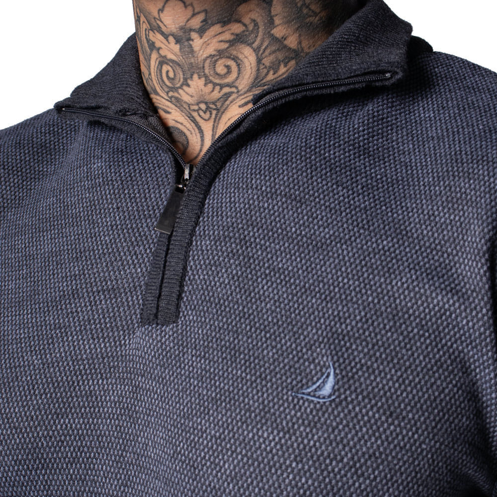 Suéter Masculino Balboa Gola com Zíper Mesclado Preto