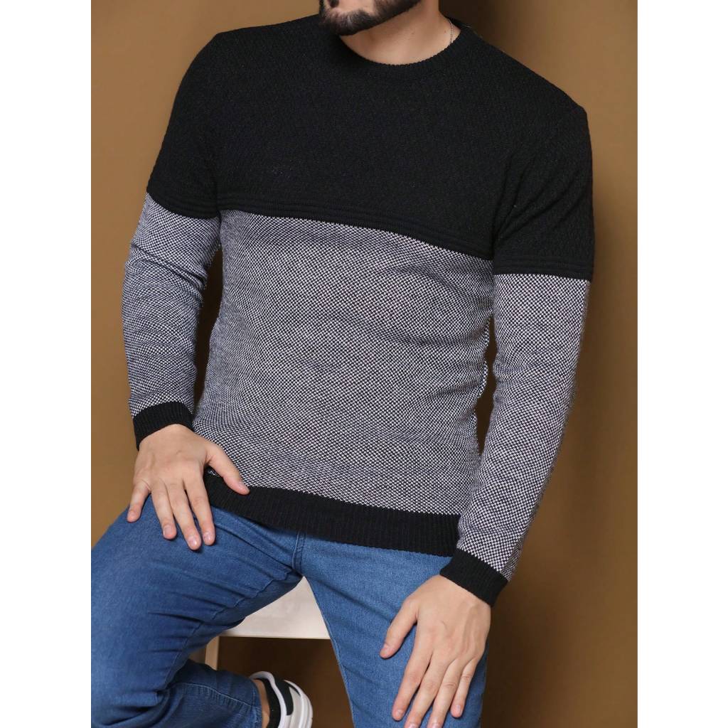 Sueter tricot masculino blusa de frio gola redonda manga longa blusa de Lã
