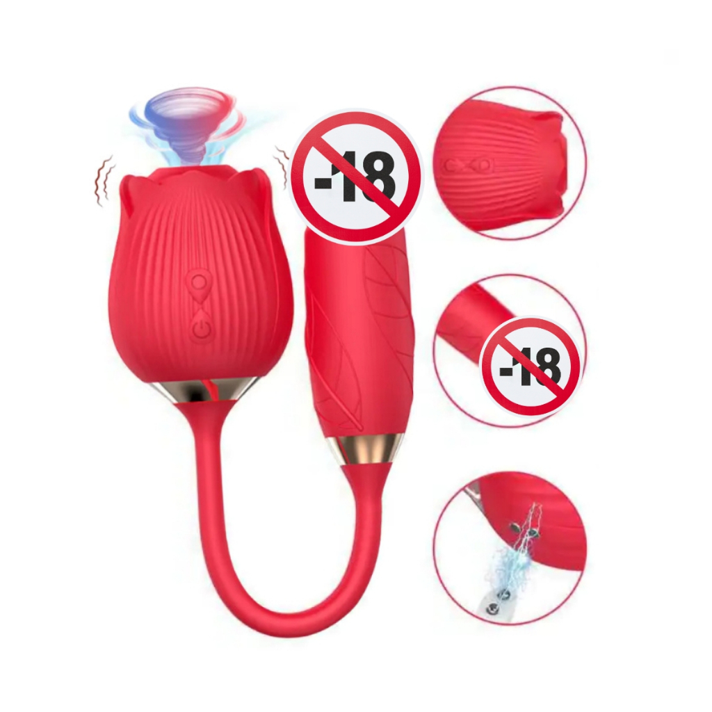 Sugador de Clitóris Formato Flor Rosa Duplo Com Bullet Vai em Vem Sex Shop