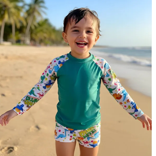 SUNGA bebê/ Infantil boxer + Blusa proteção uv CONJUNTO de banho térmico moda praia menino