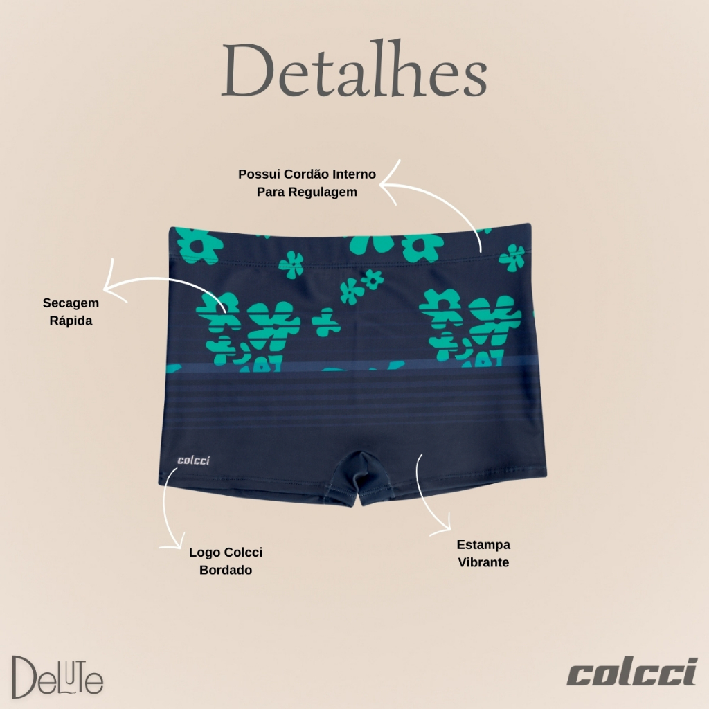 Sunga Colcci boxer Adulto Estampa Floral Ref. CL388 Sungao De Praia Colcci Liso Adulto Verao Moda Praia Com estilo classico e discreto para todos os gostos, a sunga lisa e feita em poliester e elastano, tendo uma otima durabilidade e ajuste perfeito ao corpo. Confeccionado em poliamida, este modelo de sunga garante maior conforto e liberdade de movimentos. Possui cordao no cos para ajuste. Ideal para homens que buscam conforto e seguranca para a pratica de esportes aquaticos, resiste ate 10 vezes mais cloro em relacao a produtos sem esse tratamento, permitindo maior conforto, durabilidade e otimo ajuste ao corpo. - Ideal para curtir os dias de verao. - Conforto e mobilidade dentro d'agua. - Possui cordao interno para regulagem. - Super confortavel. Composicao do Tecido: Poliester: 85% Elastano: 15% Composicao do Forro: 100% Poliamida