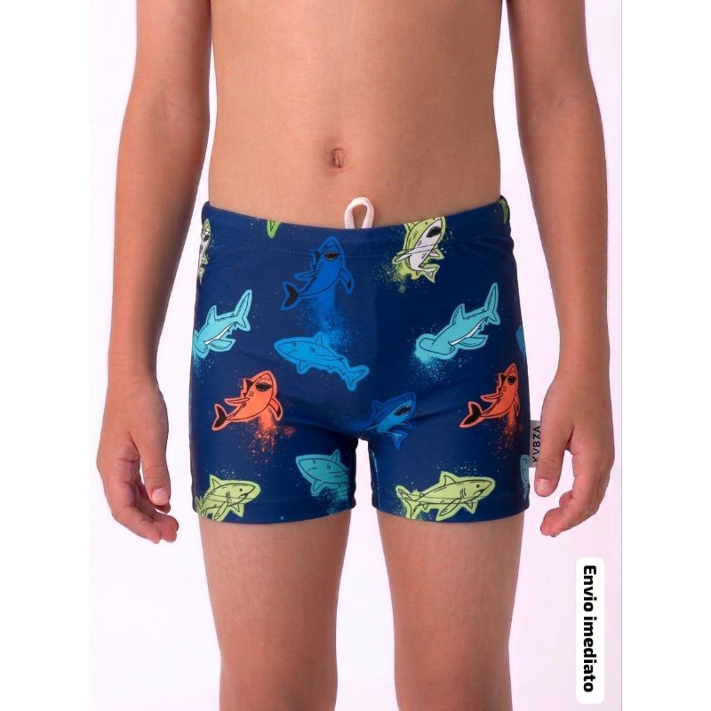 Sunga Boxer Infantil Juvenil Criança Proteção Uv+ Praia Nataçao Short Cueca Sunguinha Lisa Estampada