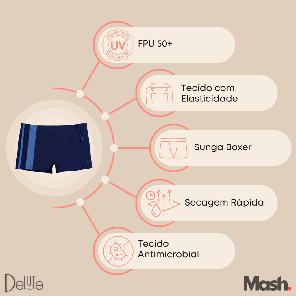 Sunga Boxer Lisa Com Bolso Lateral REF. MS300120 Ideal para quem busca um visual moderno com total liberdade de movimento, a Sunga Boxer com Bolso é perfeita para curtir a praia ou piscina com conforto e funcionalidade. Com design esportivo e listra lateral, ela garante um look atual e versátil. O bolso lateral funcional é um diferencial que traz praticidade para o dia a dia, ideal para guardar pequenos itens com segurança. Produzida com tecido de secagem rápida, essa sunga proporciona conforto prolongado, sem abrir mão do estilo. Principais benefícios: Modelagem boxer com listra lateral Bolso lateral funcional para mais praticidade Tecido de secagem rápida para conforto o dia todo Estilo esportivo e moderno com ajuste confortável Composição: Corpo: 84% Poliamida, 16% Elastano Forro: 100% Poliamida Itens inclusos: 1 Sunga Boxer Praia com Bolso
