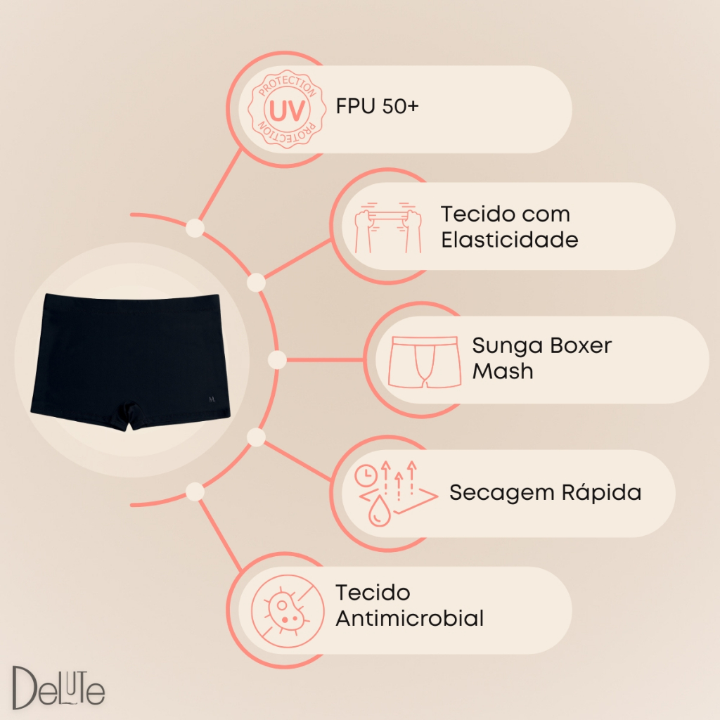Sunga Boxer Mash Lisa Forrada com Cordão de Regulagem Masculina Adulto Moda Praia FPS 50
