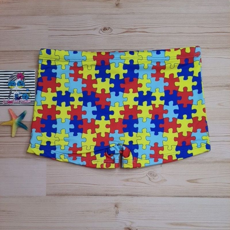 Sunga Infantil Autismo menino com Proteção Solar UV50+ Juvenil Forrada com Ajuste na Cintura