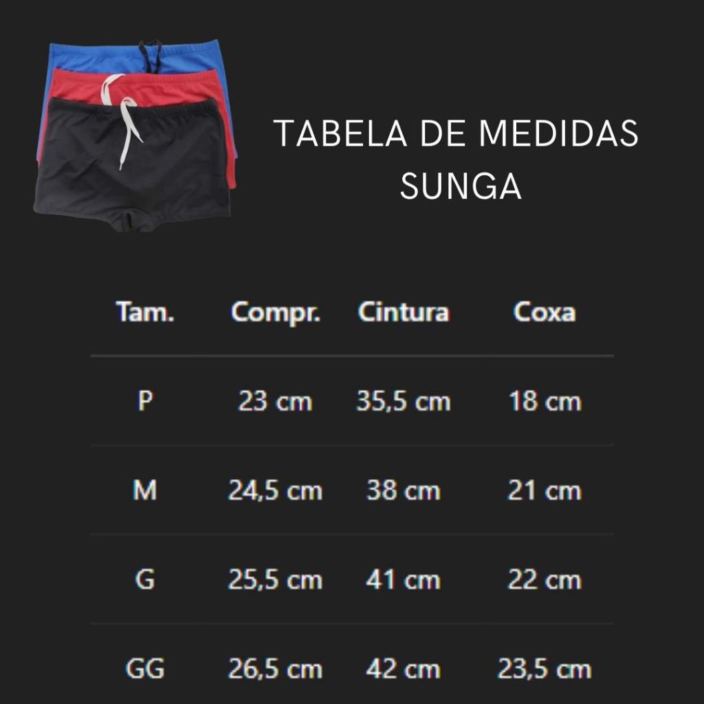 Sunga Boxer de Alta Performance - Conforto e Estilo para o Verão! Entre na estação com estilo e conforto incomparáveis com nossa Sunga Boxer de Alta Performance. Feita com materiais premium que combinam durabilidade e elasticidade, esta sunga é perfeita tanto para momentos relaxantes à beira da piscina quanto para sessões intensas de natação. Características: Material Premium: Feita com tecido de alta qualidade que proporciona ajuste perfeito e resistência ao cloro. Conforto Absoluto: Cós elástico e costuras reforçadas para máximo conforto durante todo o dia. Design Moderno: Modelo boxer que oferece suporte e liberdade de movimento, com estilo contemporâneo. Ideal para: P Veste = 38 - 40 M Veste = 40 - 42 G Veste = 42 - 44 GG Veste = 44 - 46 Praia e Piscina: Curta o sol com confiança e conforto. Esportes Aquáticos: Perfeita para natação e outros esportes na água. Lazer: Combine com camisetas ou regatas para um look descontraído e estiloso.