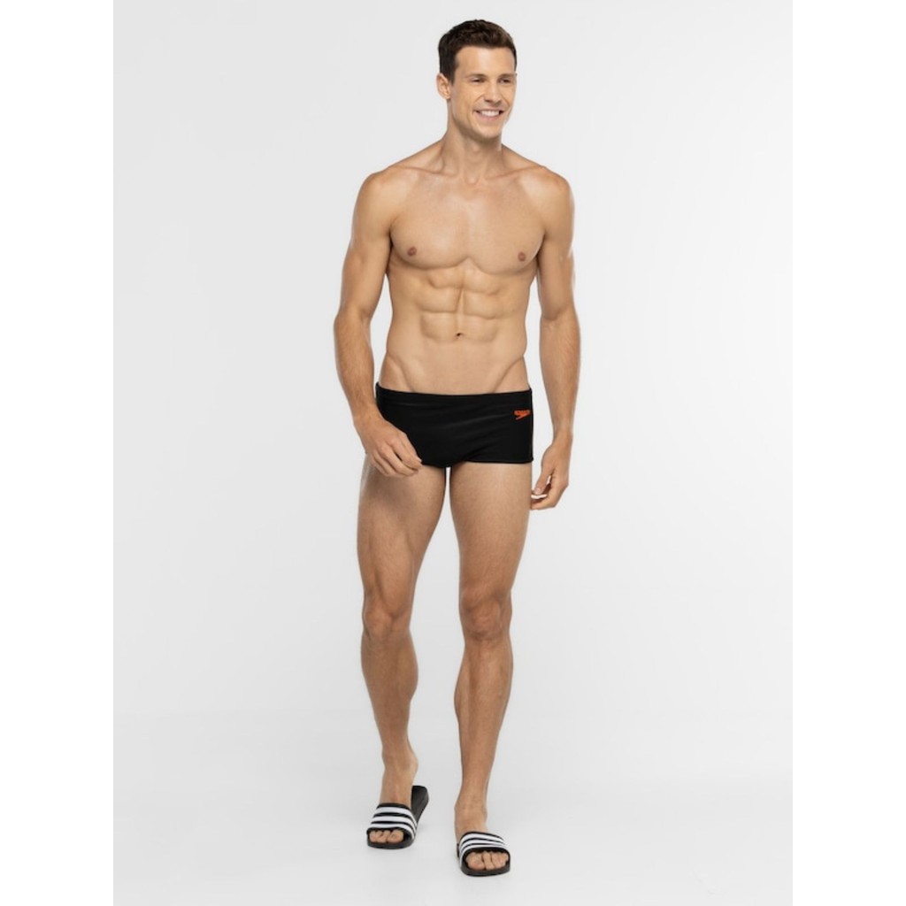 Sunga Speedo Solid 17cm Lateral Larga Boxer Natação A Sunga Speedo Solid é a escolha perfeita para homens que buscam conforto e estilo clássico na água. Com modelagem quadrada (boxer) e lateral larga de 17 cm, ela oferece cobertura segura e ajuste anatômico. Confeccionada em poliamida e elastano de alta qualidade, proporciona flexibilidade e liberdade de movimentos, sendo ideal tanto para treinos de natação e hidroginástica quanto para momentos de lazer na praia ou piscina. Especificações: - Modelagem: Quadrada / Boxer. - Largura da Lateral: 17 cm (Lateral Larga). - Cós: Elástico com cordão interno para ajuste firme. - Forro: Completo, em 100% Poliamida. - Estilo: Clássico e Esportivo. Benefícios: - Conforto superior com toque macio da poliamida. - Alta flexibilidade que não limita os movimentos. - Modelagem boxer que oferece maior segurança e discrição. - Ajuste preciso ao corpo com cordão interno. - Durabilidade e resistência para uso frequente. - Versatilidade para uso esportivo ou lazer. Composição: - Tecido Externo: 86% Poliamida e 14% Elastano. - Tecido Interno (Forro): 100% Poliamida. Cuidados e Conservação: Lavar manualmente em água fria logo após o uso. Não utilizar máquina de lavar, secar ou lavar a seco. Não usar alvejantes ou amaciantes. Secar à sombra e em local ventilado. Evitar contato com superfícies ásperas (pedras, cimento) para não desfiar. Não guardar a peça molhada em sacos plásticos. Sunga Speedo Solid Preta com lateral larga de 17cm. Modelagem boxer confortável, ideal para natação, hidroginástica e lazer. Ajuste perfeito e alta durabilidade.