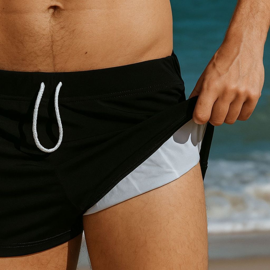 Sungas de Praia Boxe Promoção Verão Proteção UV C/ Ajuste Preta Liso Conforto