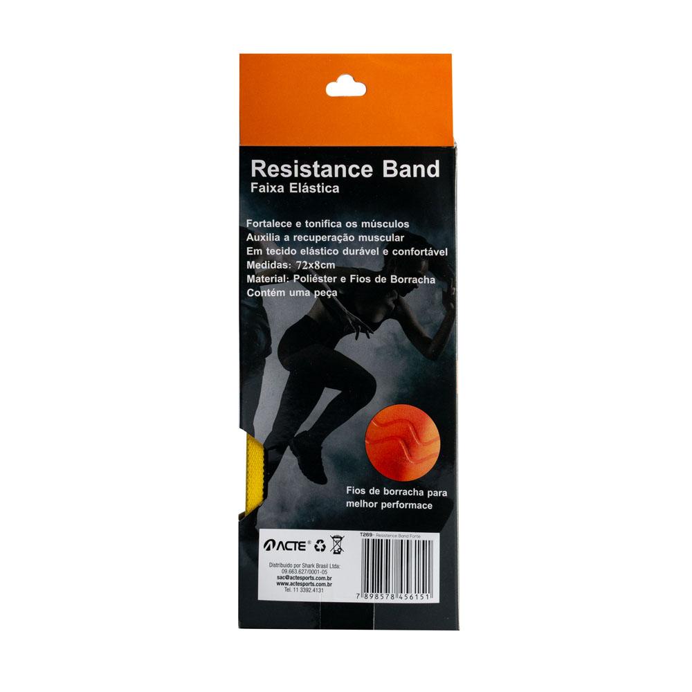 Material: Poliéster e Borracha<br>Intensidade: Forte<br>Medidas: 73x8x0,3 cm (Circunferência x Largura x Espessura)<br>Comprimento: 33 cm (dobrada)<br>Cor: Amarelo<br>Modelo: T269<br>Garantia: 3 meses<br>Uso indicado: Pilates, alongamento, yoga, reabilitação, funcional, crossfit<br>Ideal para: Academias, estúdios de yoga e uso doméstico<br>Formato: Compacta e fácil de transportar<br>Aplicações: Exercícios de força, flexibilidade e reabilitação
