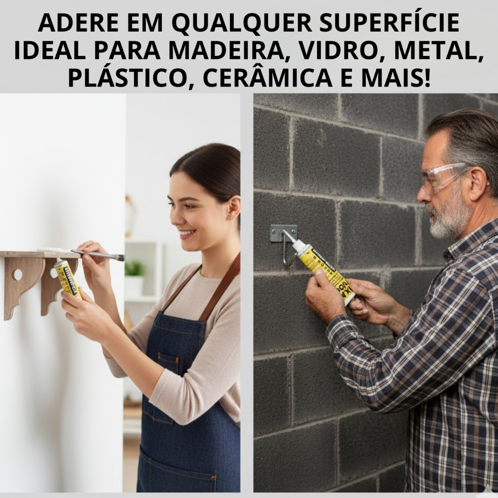 Cola Fixa Tudo Alto Poder De Adesão Até Debaixo D'água 80g ______________ SOBRE O PRODUTO : - Adesivo híbrido monocomponente indicado para colagem e vedação de materiais porosos e não porosos, como metais, concreto, pedras, cerâmicas, vidro, policarbonato e PVC. - Devido ao alto poder de adesão inicial é indicado para a fixação de espelhos e colagem de cubas. ______________ VANTAGENS : - Aplicação rápida e fácil. - Não escorre. - Não mancha. - Cura com a umidade atmosférica. - Adere em superfícies úmidas. _____________ UTILIZAÇÃO : Na colagem e vedação de materiais porosos e não porosos, como metais, concreto, pedras, cerâmicas, vidro, policarbonato e PVC. Transforma-se em uma borracha flexível e resistente. #fixatudo #adesivo #adesivohibrido #secagemrapida #profissional #kit #vedaecola #praticidade #extraforte #qualidadegarantida #comnotafiscal #envioimediato