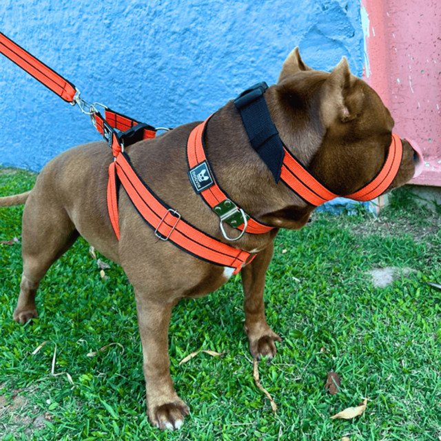 NOVO | PRODUTO NO BRASIL | PRONTA ENTREGA | ENVIO RÁPIDO Olá, seja muito bem-vindo a DOGVIX, qualquer dúvida não deixar de perguntar. Enviamos nossos produtos com agilidade e segurança. Disponível na cor: Laranja. Pacote Inclui: 1 PEITORAL AMERICANO 1 GUIA 1 COLEIRA 1 FOCINHEIRA. O Kit Voult é a escolha perfeita para donos de cães médios e grandes que buscam segurança, conforto e estilo durante os passeios com seus pets. Esse kit possui apenas um tamanho para não ter erro na hora da escolha, fique tranquilo pois possui uma grande margem de ajuste, o que facilita na hora de acertar o tamanho conforme a sua necessidade. Em caso de duvidas nos envie uma foto do seu pet no chat. MEDIDAS: KIT - Peitoral Americano - Regulagem mínima 60cm e máxima 95cm. - Coleira - 50cm até 60cm - Focinheira - 98cm (FOCINHO E PESCOÇO) - Guia - 70cm (Somos fabricantes atuando no mercado pet há mais de 14 anos) - 99% de cliente satisfeitos. - Despachamos seu pedido o mais rápido possível com um prazo de máximo um dia útil. - Atendimento super rápido suporte ao cliente. - Produto NOVO. - Envio rápido para todo Brasil. ATENÇÃO Verifique com atenção seu endereço de entrega! PRONTA ENTREGA | ENVIO IMEDIATO APÓS CONFIRMAÇÃO PAGAMENTO
