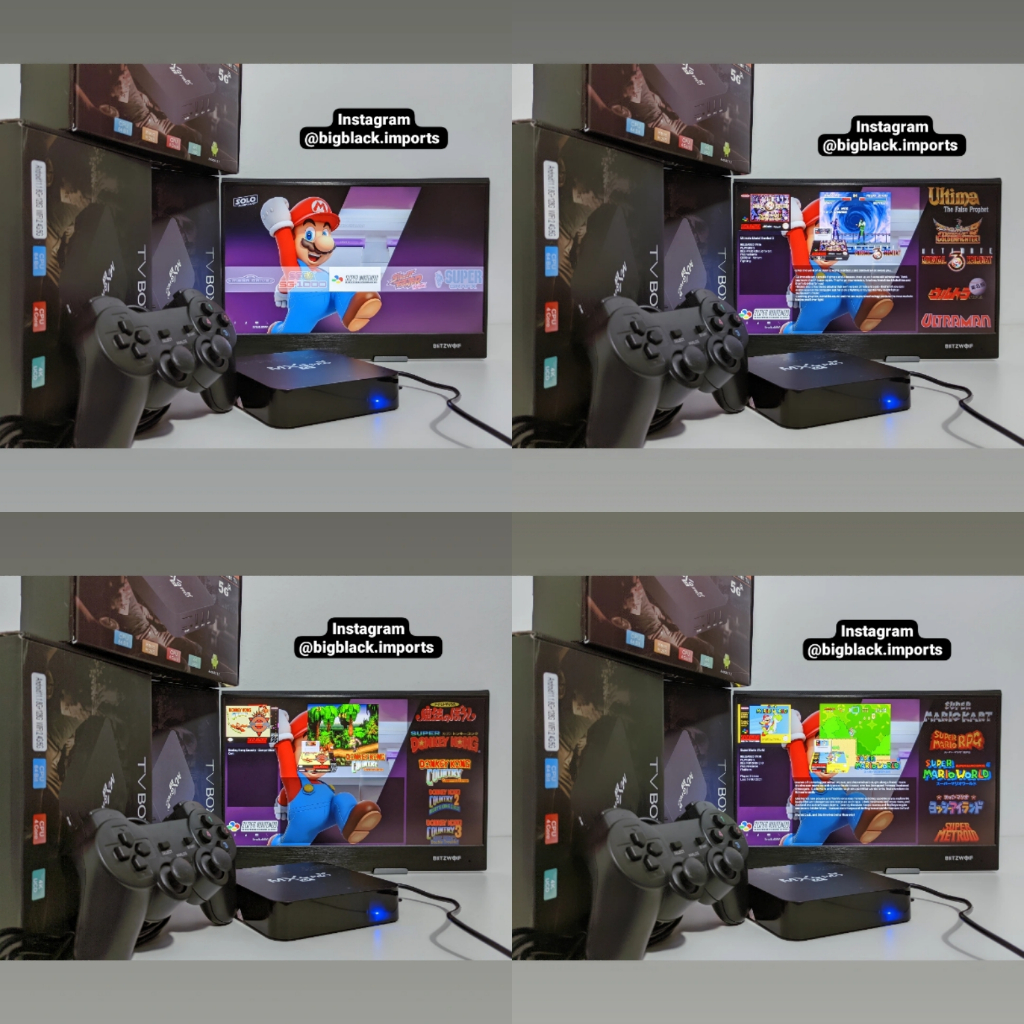 PRODUUTO JÁ NO BRASIL - ENVIO IMEDIATO! NADA DE 130MIL JOGOS REPETIDOS RUINS ! MANDAMOS OS 10 MIL JOGOS MAIS OS MELHORES JOGOS DOS ANOS 90 SELECIONADOS E TESTADOS A DEDO. O MELHOR DOS ANOS 80 E 90! MANUAL EM PORTUGUES FEITO PELA LOJA ENSIANDO A USAR OPÇÃO DE SALVAR E VOLTAR A JOGAR DE ONDE PAROU OPÇÃO PARA BAIXAR APPS LEVES DA PLAYSTORE OPÇÃO PARA ASSISTIR O YOUTUBE É SÓ LIGAR E JOGAR Relembre os melhores Clássicos: - Super Mario World; -The King of Fighters -Donkey Kong -Zelda -Bomberman -Kirb -Street Fighter -Mortal Kombat -Samurai Shodown -Mario (word, kart all star etc) - Top Gear -Sonic -Alex kidd -Metal slug -Capitão Comando -Cadillacs And Dinosaurs -Marvel VS Capcom -Marvel Super Heroes vs Street Fighter -Final Fight -Ghosts'n Goblins -Sunset Riders -Double Dragon - Brasileirão -Resident Evil 2 -Crash Bandicoot - O sistema também permite salvar os jogos e voltar de onde parou; - A lista de jogos favoritos é personalizável, assim facilita achar os melhores games; - As fichas são infinitas na seção de jogos Arcade. Além da opção de Salvar, você também tem fichas ilimitadas, podendo terminar qualquer jogo; - Sistema operacional próprio para jogos. Sistema robusto e garantia de uma vida útil muito maior ao seu console; - Sua interface é muito intuitiva, os jogos estão organizados em plataformas e dentro das plataformas os jogos estão em ordem alfabética e separado por consoles. ************* Sistemas **************** -Super Nintendo 16 bits . -Arcade -Mame -Pac Street Figther -Lynix -Atari 2600. -Atari 7800 -Capcom I / II -Vectrex -MSX -Game Gear -Nintendo -Game Boy -Game Boy Color -Game Boy Advance. -Master System -Megadrive -Sega 32X -Nintendinho 8 bits -Neo geo Poket -Neo geo poket color -PC engine -Sega -Sega SG 1000 -Wonder Swan -Wonder Swan Color -ZX Spectrum Incluso: * Mini Console Retro * 1 Cabo HDMI * 1 Fonte de energia (bivolt) * 1 ou 2 Controles Modelo PS - A QUANTIDADE DE CONTROLE VOCÊ ESCOLHE NA HORA DE PAGAR * 2 saídas para controles usb * Manual em Portugues