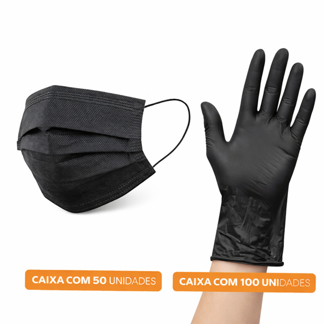 Super Kit 100 Luva Descartável Preta Nitriliíca P M G + 50 Mascara Descartável Preta Talge