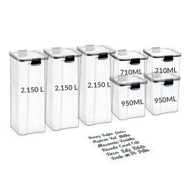 | Super Kit 7 Potes Herméticos com Trava Empilhável para Mantimentos ... este produto | R$ 113,53 | 29% | 4.9/5 | 12 |