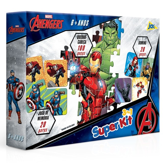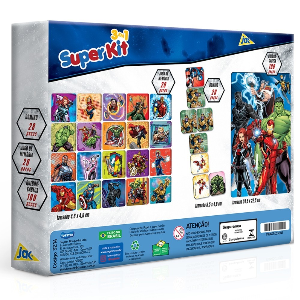 SUPER KIT OS VINGADORES 148 PEÇAS QUEBRA CABEÇA + DOMINÓ + JOGO DE MEMÓRIA TOYSTER EDUCATIVO PUZZLE