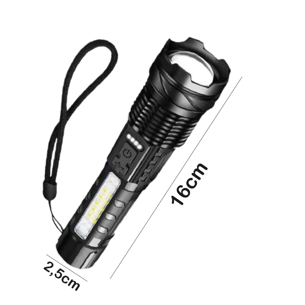 🔦 Lanterna LED Tática Recarregável - 20.000 Lúmens 🔦 🌟 Iluminação Poderosa: Dissipe a escuridão com o incrível poder desta lanterna tática de 20.000 lúmens, com alcance impressionante de até 1.000 metros. Ideal para todas as suas necessidades, com duração de 2 a 8 horas de uso contínuo. ⚡ 🔋 Bateria Recarregável e Indicador Inteligente: Carregue completamente em cerca de 3 horas com a porta USB-C conveniente. Nunca fique no escuro com o indicador de nível de bateria que mostra de 25% a 100% da carga! 🔋 💧 À Prova de Intempéries e Durável: Construída para resistir aos elementos! Esta lanterna é à prova d'água (não submersível), à prova de choque e feita de liga de alumínio de alta qualidade, protegendo contra ferrugem e corrosão. 🌧️ 🔄 Modos Versáteis: • 3 Modos na luz principal: Super Brilhante, Brilho Médio, Piscando. • 4 Modos nas luzes laterais: Super Brilhante, Brilho Médio, Vermelho, Vermelho e Azul Piscando. Desligue rapidamente após 10 segundos de uso em qualquer modo! 🚨 🏕️ Leve e Portátil: Perfeita para manutenção automotiva, camping, pesca, esportes ao ar livre, emergências e muito mais. Fácil de carregar e usar em qualquer situação. ⚙️ Características: • Lúmens: 20.000 (super brilhante) • Alcance: Até 1.000 metros • Bateria Recarregável: Sim, com carregamento USB-C (3h para carga total) • Duração: Até 8 horas de uso contínuo • Indicador de Bateria: 25%-50%-75%-100% • Modos de Iluminação: 7 modos no total (luz principal + luzes laterais) • Peso: Leve (menos de 150g) • Resistência: À prova d'água e à prova de choque 💡 Acompanhe suas aventuras com a máxima iluminação e durabilidade!