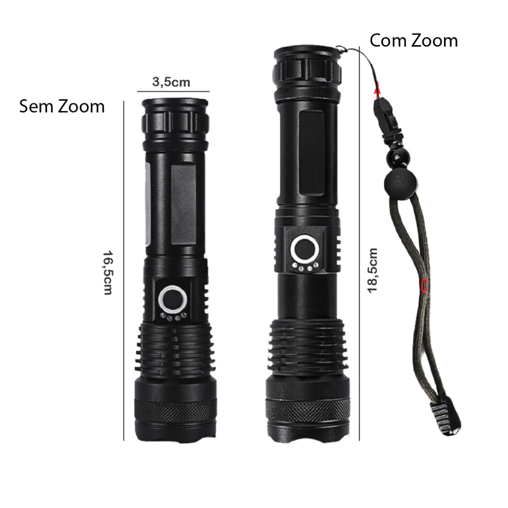 🔦 Lanterna Tática Militar LED P 50 Recarregável 🔦 ✨ Iluminação Extrema com LED P 50: Com um dos LEDs mais avançados do mercado, o poderoso LED P 50 oferece uma iluminação de tirar o fôlego, sendo 30% mais forte que o modelo T6 e com autonomia de até 100.000 horas de uso! Ideal para emergências, defesa pessoal e aventuras ao ar livre. 🔋 💪 Alta Durabilidade e Resistência: Fabricada em alumínio de alta resistência, essa lanterna é à prova d'água (não submersível), indeformável, impermeável e anticorrosiva. Perfeita para trilhas, caminhadas, escaladas, patrulha, pescaria e muito mais! 🌧️ 🔄 Modos de Iluminação Versáteis: • 100% Super Potente • 50% Normal • 25% Econômico • Strobo (pisca) Além disso, possui alerta SOS para emergências. 📢 📊 Indicador de Energia Inteligente: • 4 Níveis de Indicação: 100%, 75%, 50% e 25%. Nunca seja pego de surpresa! Características: • Modelo do LED: P 50 T 9 (super potente) • Dimensões: 3,5cm x 16,5cm x 4,1cm • Peso: 192g • Material: Alumínio de alta resistência • Autonomia: Até 4 horas de uso contínuo • Resistente à água: Sim, porém não submersível • Alimentação: 1 bateria recarregável ou 3 pilhas AAA (com adaptador) Itens Inclusos: • 1x Lanterna LED P 50 Tática Militar Recarregável • 1x Estojo Porta-Lanterna • 1x Cordão de Pulso • 1x Cabo USB • 1x Adaptador para Pilhas • 1x Bateria Recarregável Modo de Uso: 1️⃣ Carregue a bateria por 12 horas antes do primeiro uso (use um carregador de celular ou cabo USB em qualquer porta USB). 2️⃣ Pressione o botão no meio da lanterna para ligar e alternar os modos de iluminação. 🌟 A lanterna mais potente e confiável para suas aventuras e emergências!