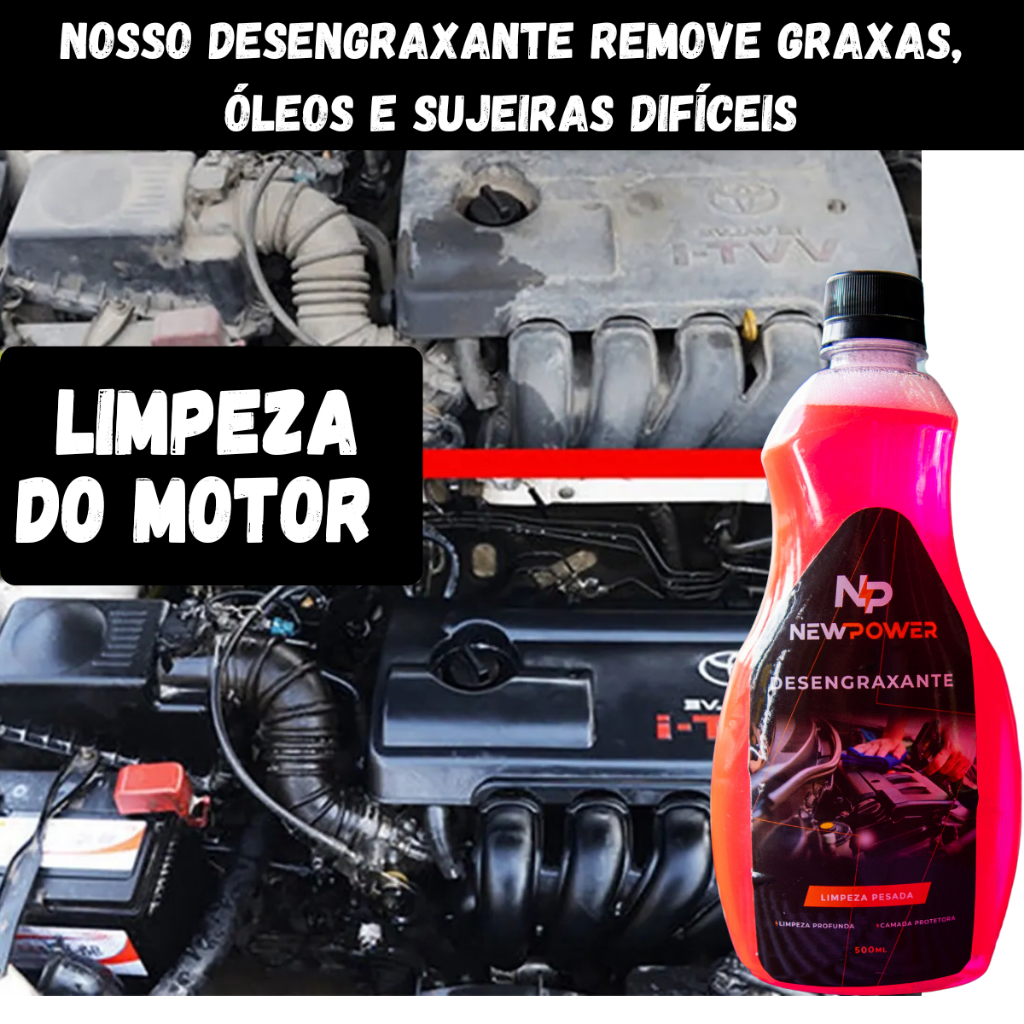 Super Linha Completa New Power - Para Lavagem e detalhamento completo de seu veiculo Limpa e Protege Pretinho Automotivo: Características: Este produto é conhecido pelo seu alto rendimento, o que significa que mesmo uma pequena quantidade pode cobrir uma grande área, proporcionando um brilho intenso e molhado à borracha, deixando-a com aparência de nova. Modo de Uso: Primeiro, limpe bem a superfície da borracha para remover qualquer sujeira ou resíduo. Após a limpeza, seque completamente. Aplique o Pretinho Automotivo utilizando uma esponja ou pincel, espalhando o produto de maneira uniforme. É importante aguardar entre 15 a 30 minutos para que o produto seque completamente, garantindo o acabamento brilhante e duradouro. Cera Revitalizante: Características: A Cera Revitalizante é um composto de matérias-primas de alta qualidade que proporciona um brilho intenso aos plásticos externos do automóvel. Sua fórmula não contém silicones, tornando-a segura para uso em oficinas de repintura automotiva, sem risco de interferir em processos de pintura. Modo de Uso: Para aplicar, certifique-se de que a superfície dos plásticos esteja limpa e seca. Utilize um aplicador de espuma para espalhar o produto em movimentos circulares, assegurando a cobertura total da peça. O produto vem em um frasco de 120g e possui uma validade de 24 meses após a data de fabricação, permitindo um uso prolongado. Multiuso Limpador: Características: Este limpador multiuso é altamente eficaz na remoção de manchas difíceis e é ideal para a limpeza interna do veículo. Sua fórmula é cuidadosamente desenvolvida para não agredir as superfícies, possuindo uma ação desengordurante que não deixa manchas. Modo de Uso: A aplicação é simples: borrife o produto diretamente sobre a área que necessita de limpeza, como cintos, painéis, estofados, couro e carpetes. Após a aplicação, utilize um pano ou escova para remover a sujeira. O produto vem em uma embalagem de 500ML e inclui um borrifador para facilitar o uso. Shampoo Lava Autos: Características: Com ótimo rendimento, este shampoo inclui Cera de Carnaúba, que deixa a pintura do veículo com um brilho notável. Seu pH balanceado garante que não prejudicará a camada de cristalização da pintura, tornando-o seguro para uso em veículos de qualquer cor, incluindo aqueles que são vitrificados ou cristalizados. Modo de Uso: Dilua o shampoo na quantidade indicada nas instruções. Aplique o produto diluído na pintura do veículo com uma esponja ou luva de lavagem automotiva. Após a aplicação, remova completamente o produto com água e seque o veículo com um pano macio, preferencialmente de microfibra, para evitar riscos. Desengraxante: Composição: Este desengraxante é formulado para ser seguro e eficaz, não contendo ácido e sendo não tóxico. Ele é capaz de limpar profundamente sem danificar as peças do veículo. Modo de Uso: Borrife o desengraxante diretamente sobre a graxa ou óleo acumulado no motor, chassis ou rodas. Deixe o produto agir por alguns segundos e então esfregue a área com uma escova ou pano. Para finalizar, remova a sujeira com água ou simplesmente com um pano limpo. Para superfícies pintadas, dilua o desengraxante em até 4 partes de água e faça um teste em uma pequena área antes da aplicação completa.