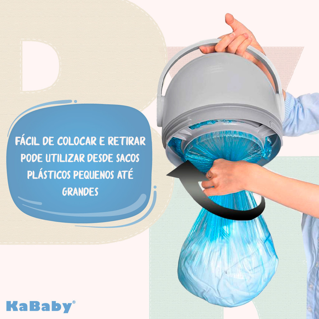 Lixeira Mágica Anti Odor Kababy Branco A Lixeira Mágica da Kababy foi projetada para oferecer praticidade e eficácia no descarte de resíduos, ela utiliza sistemas anti-odores, e impede que o cheiro das fraldas sujas se proliferem no ambiente o deixando sempre limpo, além da praticidade e do designe único que ela possui, a lixeira magica da Kababy é antibacteriana feita de materiais de alta qualidade Polipropileno, Plástico ABS e Polietileno, livre de BPA, que a torna mais resistente evitando manchas e descoloração. Características: Tecnologia Anti Odor Avançada: Antibacteriana feita de materiais de alta qualidade Polipropileno, Plástico ABS e Polietileno, livre de BPA, que a torna mais resistente evitando manchas e descoloração. A lixeira da Kababy utiliza uma combinação de materiais e tecnologias avançadas para neutralizar os odores dos resíduos, evitando que se espalhem pelo ambiente. Design Funcional e Moderno: Com um design elegante e funcional, a Lixeira Mágica da Kababy se integra facilmente a diferentes tipos de decoração, seja em residências, escritórios ou espaços comerciais. Material Durável e de Qualidade: Fabricada com materiais de alta qualidade, esta lixeira é resistente e durável, garantindo uma longa vida útil e uso contínuo sem comprometer sua eficácia. Fácil de Usar e Limpar: Com um sistema de abertura e fechamento simples, a lixeira proporciona conveniência no descarte dos resíduos. Além disso, sua superfície é fácil de limpar, mantendo-a sempre higienizada. Capacidade Adequada: Disponível em diferentes tamanhos e capacidades, a Lixeira Mágica da Kababy atende às necessidades de diferentes tipos de usuários, desde residências até ambientes comerciais de alto tráfego. Ecologicamente Correta: A preocupação com o meio ambiente é uma prioridade, e a Lixeira Mágica da Kababy é uma opção eco-friendly, incentivando o descarte adequado dos resíduos e reduzindo o impacto ambiental. Avaliações Positivas dos Clientes: A Lixeira Mágica Anti Odor da Kababy recebeu avaliações positivas dos clientes, destacando sua eficácia, durabilidade e excelente relação custo-benefício. Capacidade: Comporta até 20 fraldas Sobre a KaBaby Fundada em 2011, a KaBaby desenvolve produtos e acessórios inovadores para acompanhar todas as fases do crescimento dos bebês. Com uma grande variedade de artigos para crianças de 0 a 5 anos, nossos produtos são pensados com foco na qualidade e conforto, sempre seguindo à risca todas as normas técnicas e de segurança com certificações nacionais e internacionais. Desenvolvido com muito cuidado e carinho para os consumidores, nossos produtos proporcionam experiências marcantes no estímulo aos sentidos e transitam nas categorias de alimentação, segurança, higiene, saúde, passeio e atividades. Ter um produto KaBaby em casa é viver uma experiência única e especial com quem mais amamos.