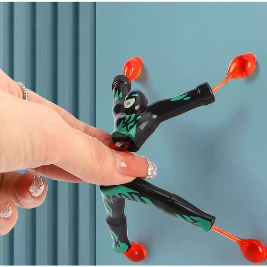 Boneco Homem Geleca que gruda na parede e escala, Super Ninja 8cm de altura. Cores enviadas aleatoriamente! Diversão garantida!