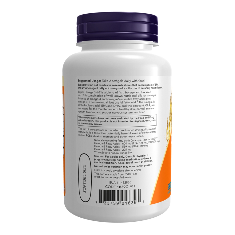 Super Ômega 3-6-9 Now Foods 90 Softgels Importado 1. O que é o Super Ômega 3-6-9? O Super Ômega 3-6-9 é uma combinação de ácidos graxos essenciais provenientes de óleos de peixe, linhaça e borragem. Ele oferece uma fonte equilibrada de ômega 3, 6 e 9, importantes para o equilíbrio lipídico e várias funções corporais. 2. Por que considerar a suplementação com Super Ômega 3-6-9? A suplementação com Super Ômega 3-6-9 pode ser indicada para garantir a ingestão de ácidos graxos essenciais. Esses ácidos graxos desempenham papéis fundamentais no funcionamento do corpo, auxiliando no equilíbrio lipídico e promovendo bem-estar. 3. Impacto do Super Ômega 3-6-9 para bem-estar O Super Ômega 3-6-9 pode contribuir para o bem-estar ao fornecer ácidos graxos essenciais que são necessários para o funcionamento adequado do corpo. Ele pode apoiar a circulação e ajudar a manter o equilíbrio de lipídios no sangue. 4. Como o Super Ômega 3-6-9 age no corpo? O Super Ômega 3-6-9 fornece ácidos graxos essenciais que são absorvidos pelas células e tecidos, colaborando com a regulação dos processos inflamatórios e o equilíbrio dos lipídios no corpo. Ele também contribui para a manutenção do funcionamento adequado do sistema circulatório. 5. Quantidade no frasco e praticidade de uso O frasco contém 90 softgels de Super Ômega 3-6-9, quantidade ideal para uso prolongado. A recomendação é de uma cápsula diária, facilmente ingerida com água, tornando o consumo prático e conveniente para quem deseja manter uma boa ingestão de ácidos graxos essenciais. Validade longa