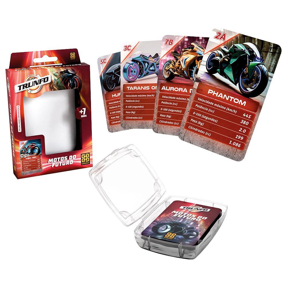 Super Trunfo – Motos do Futuro Acelere rumo ao desconhecido com as máquinas mais ousadas do amanhã! Descubra um novo nível de velocidade, estilo e inovação com o Super Trunfo – Motos do Futuro! Encare desafios alucinantes com motos que parecem saídas de um filme de ficção científica – cheias de tecnologia de ponta, design arrojado e desempenho surpreendente.