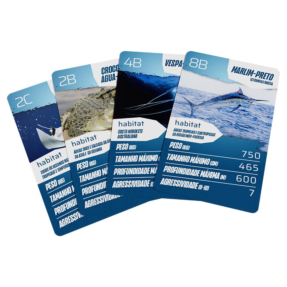 Super Trunfo Predadores Aquáticos traz 32 cartas com ilustrações e informações sobre os predadores dos mares. Em qual item o predador da sua carta é o melhor? Será no peso? Na agressividade? Ou você tem o Super Trunfo? Escolha, compare e vença esta emocionante disputa!