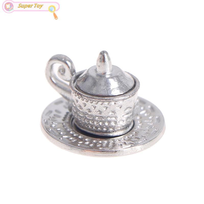 Conjunto de talheres de chá em miniatura de 1/12 Bonecas em metal prateado em miniatura conjunto de talheres de café em folha\nDescrição:\nFeito de materiais metálicos de alta qualidade. Brinquedos não infantis! Cuidado para evitar que as crianças comam ou prejudicam por ele!\nIncluindo: 1 bandeja de chá, 1 bule de chá,2 xícaras,2 pratos,2 garrafas de chá,2 tampas de bule\nMaterial: Metal/Liga\nCor: Prata\n Placa quadrada prateada:L: 5,3cm mais comprimento da alça: 6,5cm largura: 4,7cm\nDisco: Diâmetro O pacote inclui:\n1 conjunto de chá)\n