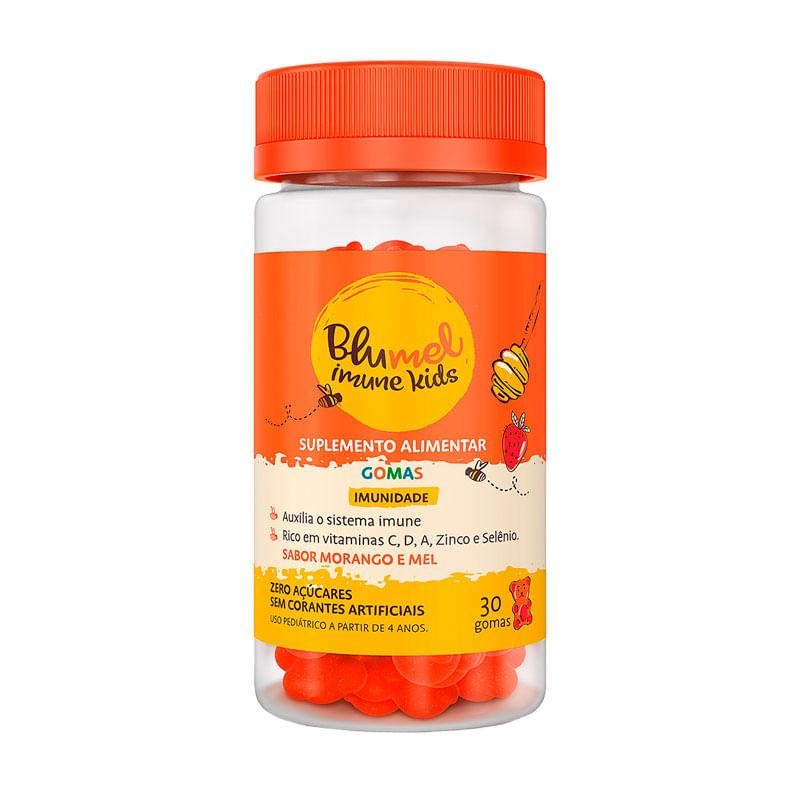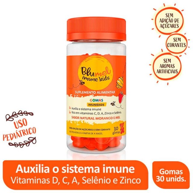 O Blumel Imune Kids é um suplemento alimentar em gomas, composto por Vitaminas C, D, A, Zinco e Selênio.