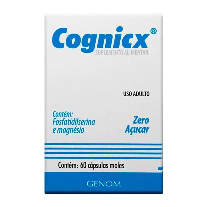 O que é Cognicx e para que serve? Cognicx é um suplemento alimentar que reúne vitaminas, micronutrientes e fosfatidilserina que, aliado a um estilo de vida saudável com dieta equilibrada e exercícios físicos, auxilia o metabolismo energético celular. Consulte o médico e nutricionista. Como tomar Cognicx? Consumir 2 cápsulas moles ao dia ou segundo orientação médica.